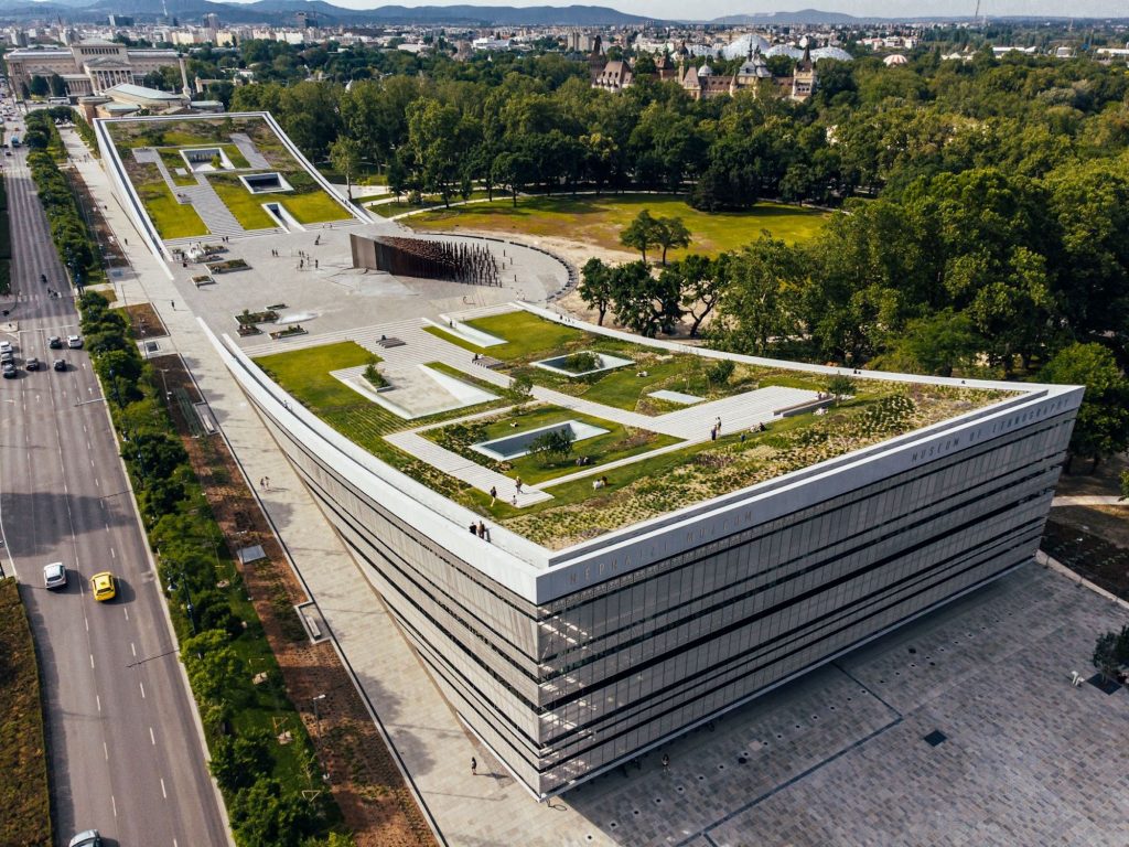 A Néprajzi Múzeum épületének két szárnya egy képzeletbeli, egy kilométer átmérőjű kört idéz meg, felszínén egy több mint hétezer négyzetméteres tetőkerttel. Így nemcsak egy tökéletes kör szeletét látjuk, hanem az épület kapuként szolgál a mögötte elterülő természeti környezet, a megújult Városliget és a lüktető városi élet között.