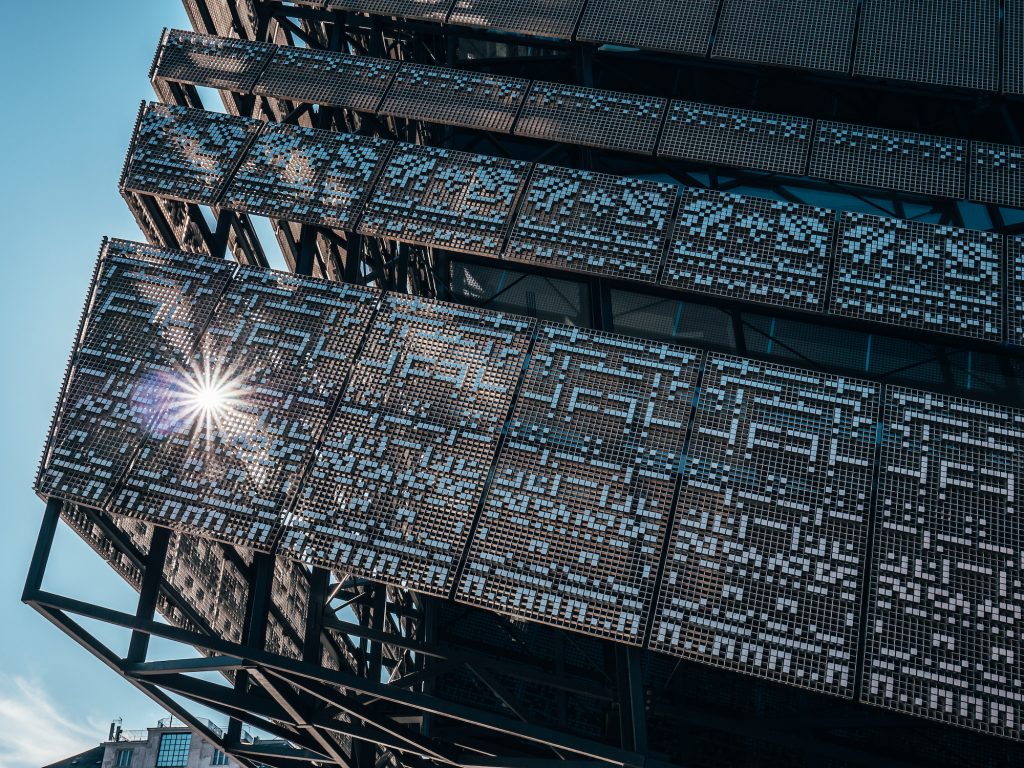 Ezt a hordozó és átvezető funkciót erősítette a tervező az épület homlokzatán körbefutó árnyékoló fémrácsozattal, amelyen a múzeumban őrzött különféle népek, kultúrák hagyományaiból származó tárgyakon megjelenő mintákból készített kortárs ornamentika-átiratok jelennek meg – magyarázta Kondor-Szilágyi Mária kurátor. – A pixelekből kialakított ornamentika a magyar és az egyetemes kultúra szőtteseként a százötven éves Néprajzi Múzeum páratlanul gazdag gyűjteményét szimbolizálja, és elsőként fogadja a múzeumba érkezőket.