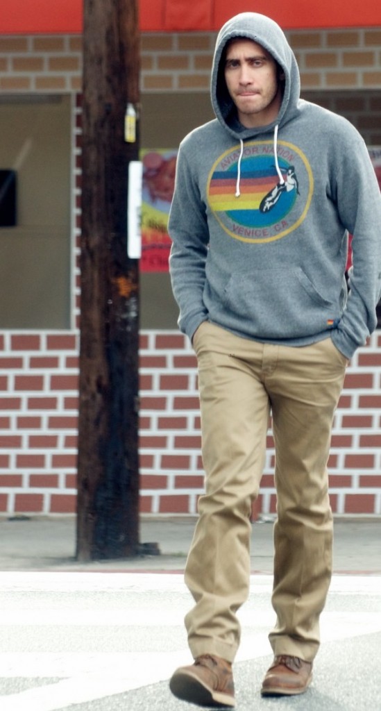 A bakancs univerzális darab, kombinálható a tavasz, illetve az ősz egyik legdivatosabb darabjával, a baseballdzsekivel. Gyllenhaal a Yankees szurkolója, de nem viszi túlzásba a rajongást, mindössze egy fekete sapkával jelzi, hogy támogatja a csapatot. Egységes és sportos összeállítás, amelyen jól látszik, az utca és a sport divatja kiválóan megfér egymás mellett, ha ízlésesen keverik.