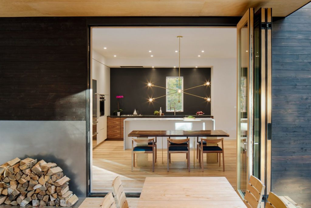 Amúgy ez egy ősi japán fakezelési eljárás, mellyel a fát úgy szenesítik, hogy egyrészt ne fogjon utána, másrészt pedig roppant tartós, az elemeknek ellenálló, elegánsan minimál végeredménye legyen. A csillárt pedig azonnal lopnánk a saját pecónkba.