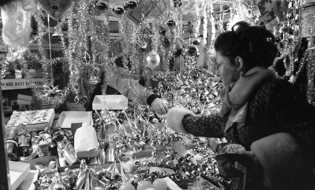 Karácsonyfadísz-árus 1976-ban (Fotó: Fortepan/Urbán Tamás)