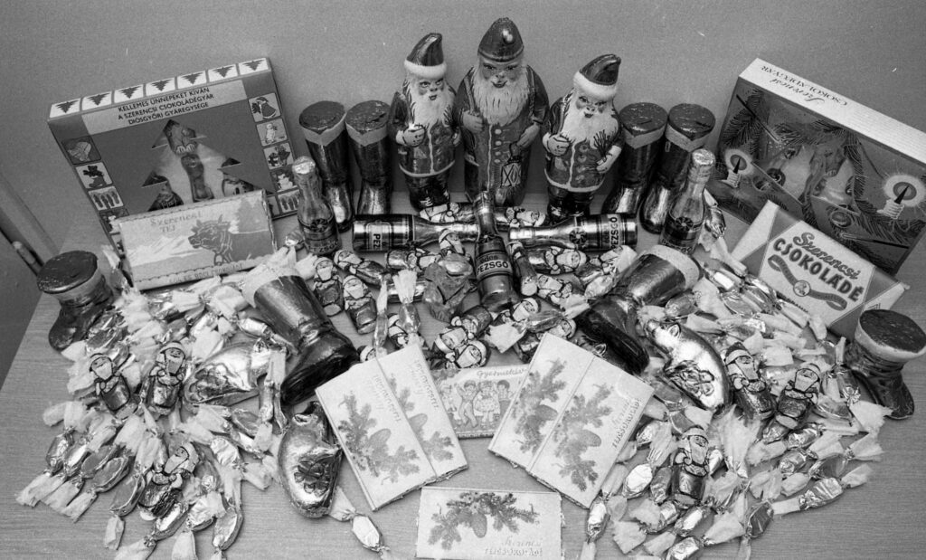 A Magyar Édesipar Szerencsi Csokoládégyár termékei egy 1979-es fotón (Fotó: Fortepan/Magyar Rendőr)