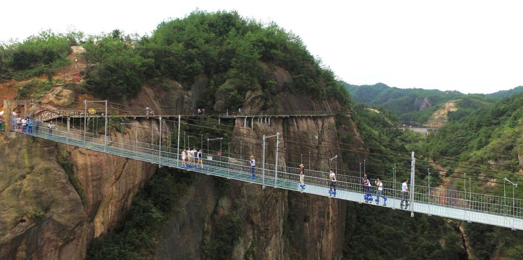 Kína Hunan tartományában van egy olyan híd, amit a legelvetemültebb adrenalinturistáknak találtak ki.