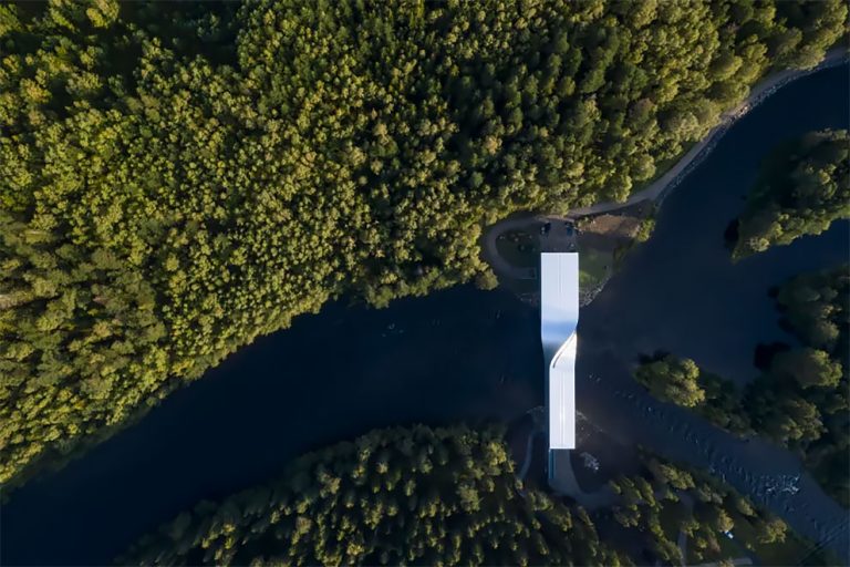 - de emellett egy hatvanméteres átjáróként összeköti a legnagyobb észak-európai szoborparkot – jelenleg ugyanis a Kistefos szoborparkot egy folyó választja ketté.