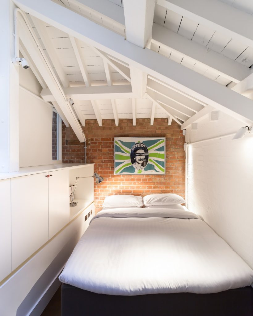 Az alapvetően kicsi lakást pár évvel ezelőtt néhány kreatív építész segítségével roppant indusztrális és kortárs módon kibővítették. A munkálatok alatt az eredeti falak is előkerültek, melyeket profin renováltak és megőriztek. A végeredmény pedig egy csodás, igazán londoni lelkű lakás és egy ellenállhatatlan terasz.
