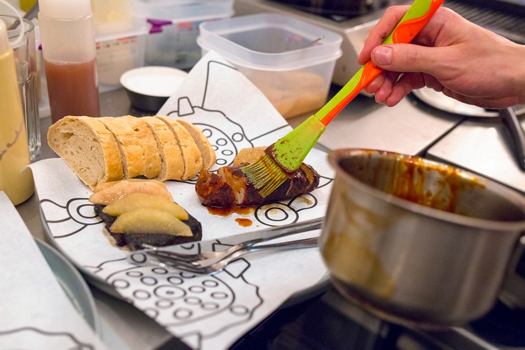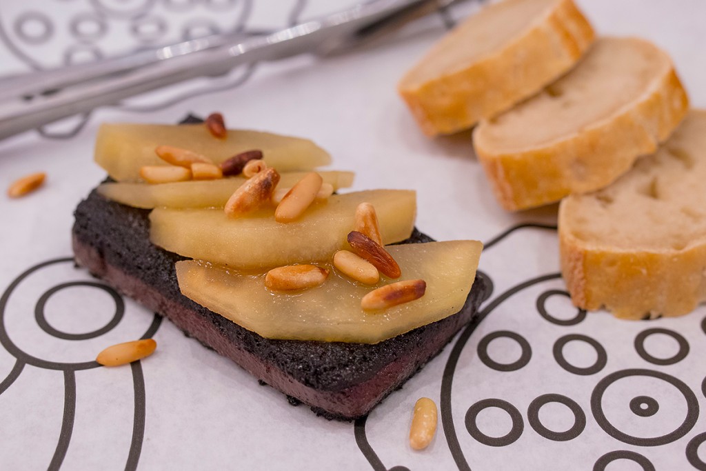 Utolsó előtti kolbászunkkal végképp haladunk a dekadencia felé, ez a Kacsamájas csirke (1390 Ft), melynek már a neve is sokat ígér. Ebben a timutbors az a fűszer, mely meghatároz mindent, a máj kis darabkák formájában helyezkedik el a kolbászban, és mint a többi, ez is elképesztően homogén, a külseje ropog, a belseje pedig krémes. Legvégül pedig jöhet a desszert, ami nem más, mint a Véreshurka, de nem ám úgy, ahogyan azt megszoktuk: az ízek alapján akár karácsony is lehetne, ugyanis a fűszerezés masszívan erre hajaz, rajta pirított fenyőmag, mellé pedig almakompót jár. Ha valamit, akkor ezt mindenkinek meg kell kóstolnia, egy egészen más dimenzióba helyezi a klasszikus, és ehhez képest a fasorban sem levő véres hurka fogalmát. Zseniális.