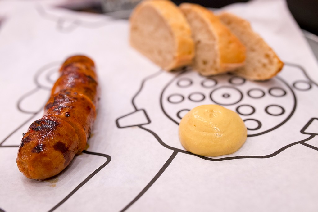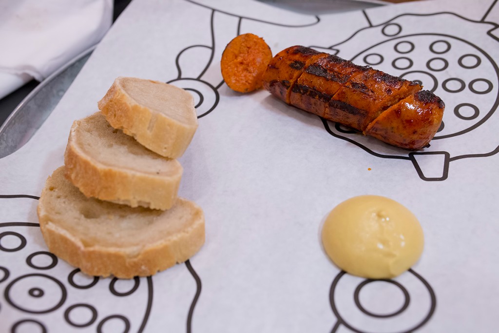 Az ötletgazdák fejében első körben a klasszikus kolbász derengett fel, majd gyorsan el is vetették a fokhagymás büfi kísérte képet. Ez az érzés amúgy akkor kerül elő, amikor nincs csírátlanítva a fokhagyma. Itt ezt a hibát nem követik el, és ráadásul egy kicsit könnyítettek is a matérián, így készülhettek el a Budapesti Csemege és Csípős (790 Ft) fantázianevű kolbik, többek között római köménnyel, és az utóbbi csilivel fűszerezve. Mindegyik tányéron helyet kap 12 deka hús, pár karika ciabatta, és valami extra, ami jelen esetben jó kis házi mustár.