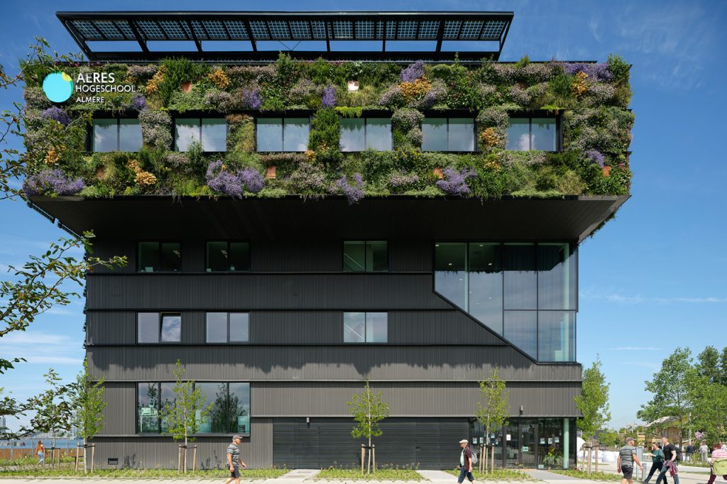 Még az előző tanév kezdetén avatták fel az Aeres Hogeschool Almere oktatási és kutatóintézmény új épületét. Miután a hollandiai iskola maga is „zöld gazdasággal” foglalkozik, kézenfekvőnek tűnt egy egészséges, környezet- és energiatudatos kollégiumot tervezni neki. Az amszterdami BDG Architecten nem is aprózta el a dolgot, a körforgásosság elvei mentén tervezett egy olyan épületet, ami talán nem csak külsőségeiben zöld.