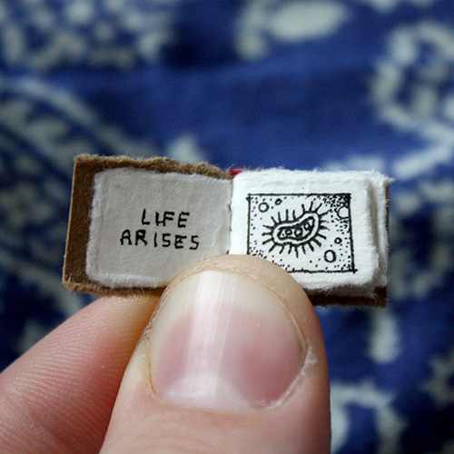 Evan Lorenzen Művészet és ilyesmi című tumblr-accountján nem mindennapi alkotásokat tesz közzé. Minket a leginkább két könyve fogott meg, melyek olyan picik, hogy még a füled mögé is el tudod tenni őket, ha útra indulnál. Az egyik remekmű stílusosan az élet apró örömeiről szól, a másik sorra veszi fajunk történelmének legfontosabb eseményeit. Mindkettő vicces és elgondolkodtató egyszerre.