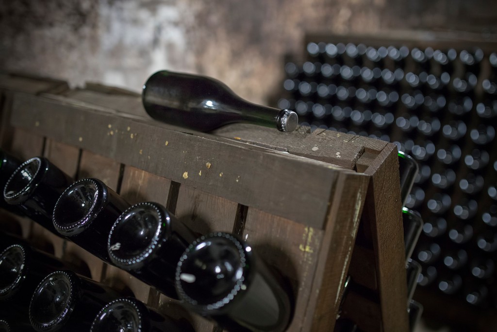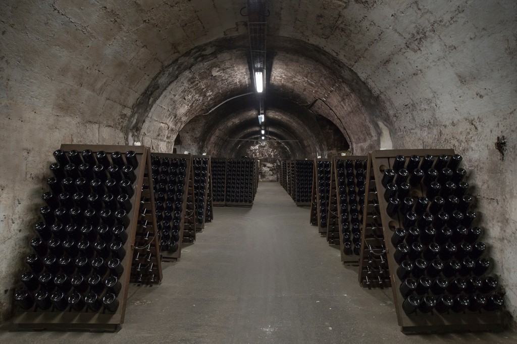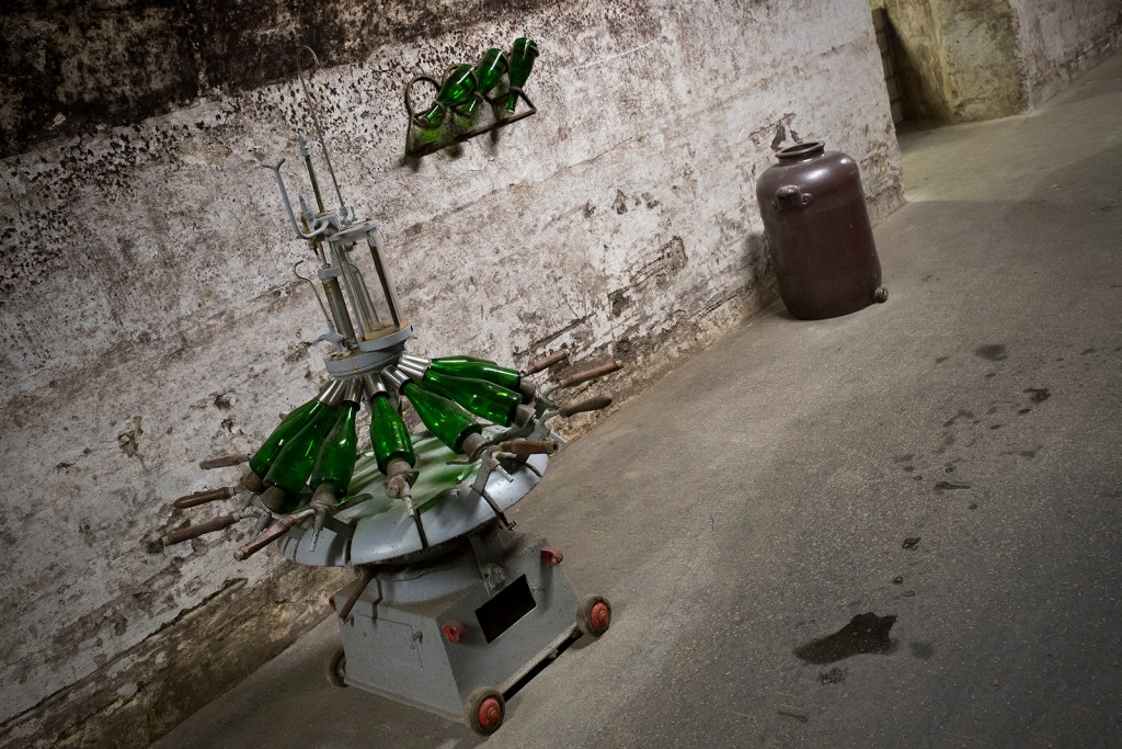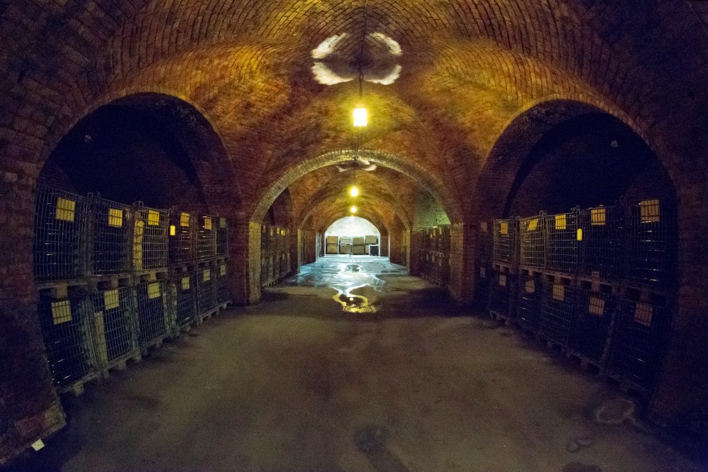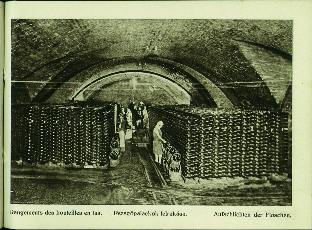 A boltíves, téglafalú hatalmas pincékben sétálva az ember úgy érzi, mintha egy katedrális mélyén járna, ami nem is jár messze az igazságtól, a helyet nyugodtan nevezhetjük a magyar pezsgőgyártás szentélyének. A hosszan elnyúló, katakombaszerű helyiségekben mélyzöld palackok sorakoznak ezresével, rázóállványokra vagy máglyákba rakva.