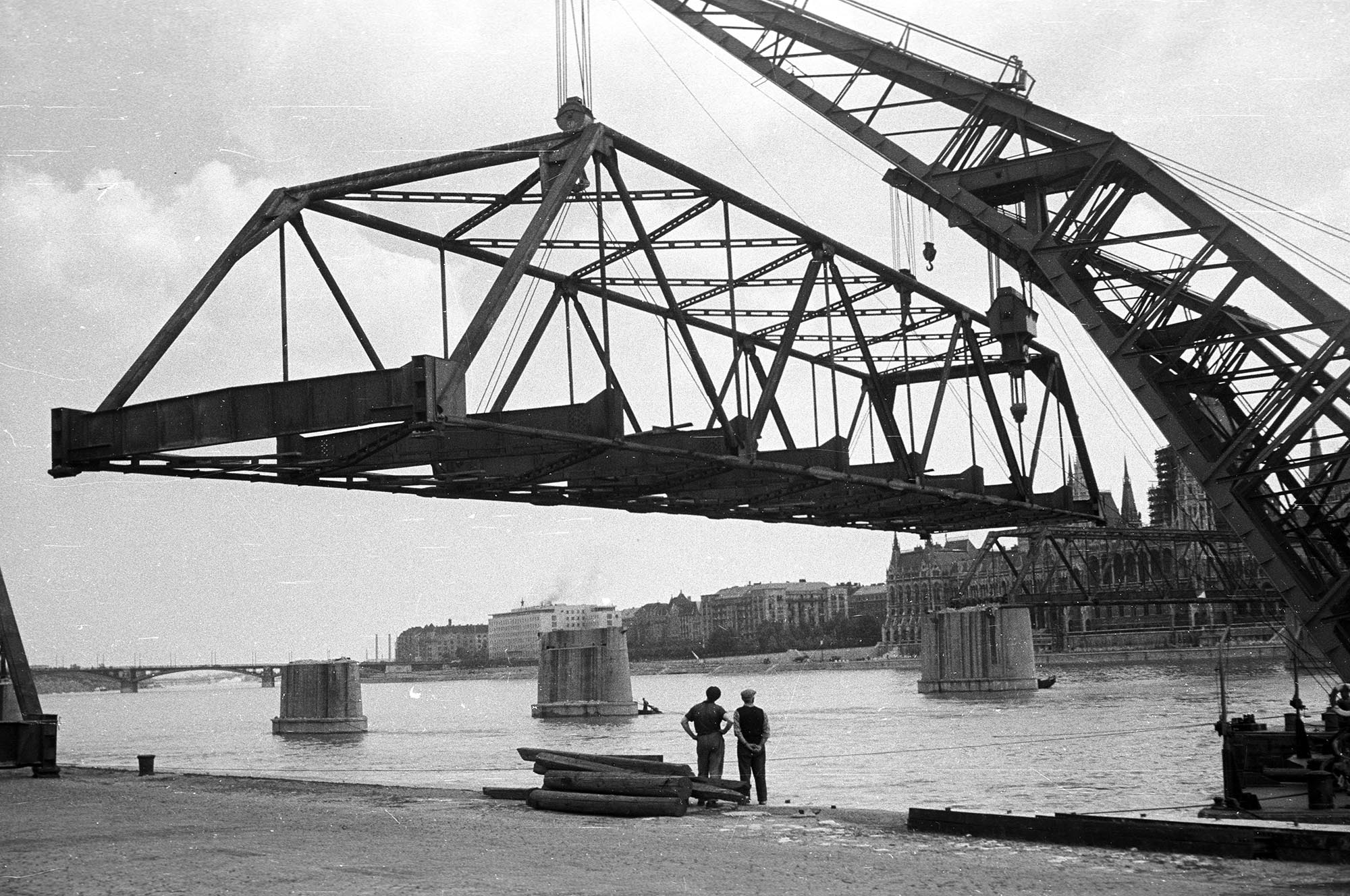 A mérnököknek és a munkásoknak nem volt idejük cizellálni. Olyan megoldás kellett, ami gyors, stabil, és kivitelezhető a háború utáni alapanyaghiányban. Mistéth Endre és Hilvert Elek tervei alapján 1945 májusában elkezdték az építkezést a Parlament és a Batthyány tér között.