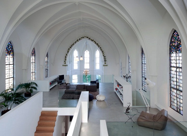 „Költözz be Isten házába!” – valószínűleg nem ezzel a szlogennel hirdette meg a holland Zecc Architecten azt az utrechti templomot, amit komoly erőfeszítésekkel egy valódi otthonná alakítottak. A vállalkozás nem példa nélküli, hiszen Hollandiában több száz templom roskadozik kihasználatlanul évek óta, az átalakítással tehát tulajdonképpen a lerombolástól védik meg a városkép szempontjából is fontos épületeket. A képen látható St. Jakobus templomot 1991-ben zárták be, majd éveken keresztül kiállítóteremként használták, de néhány bátor tervezőnek köszönhetően ma már egy család lakik benne, akik egy rendkívül praktikus, konyhával, hálószobával és nappalival felszerelt épületet vehettek birtokba.