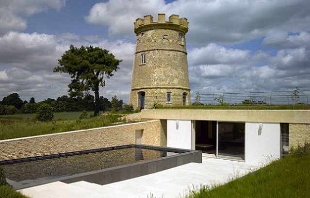 A Gloucestershire mellett található XVIII. századi lakótorony tökéletes példája annak, hogyan kell új funkciót adni egy régi és struktúrájában is elavult épületnek. Mivel az 1790-ben épített Round Tower lakóháznak igen szűkös lett volna, ezért a renovált toronyban csak a hálószoba és a fürdőszoba kapott helyet, a többi helyiséget, például a konyhát és a nappalit pedig annak a dombnak a belsejében alakították ki, amin a bástya áll. A tíz méter magas torony tetejéről csodás kilátás nyílik a tájra, ráadásul az ügyes tervezésnek köszönhetően a torony látványát semmilyen oda nem illő tényező nem rontja.