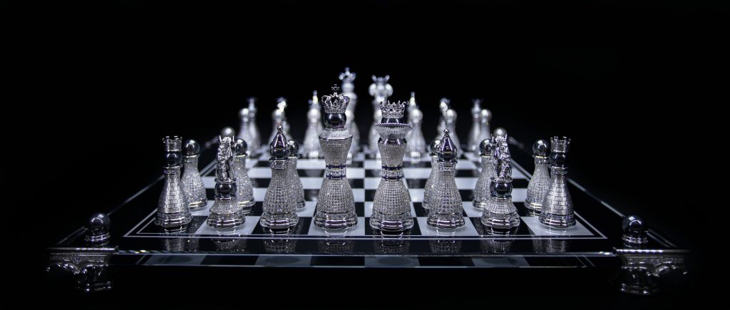 Az exkluzív készletből összesen 3 darab készült, mindegyik számozva és hitelesítve van. A 32 sakkfigura mindegyike 18 karátos fehéraranyból készült, és a legkülönlegesebb gyémántok díszítik. Nem maradt ki a díszítésből a királykék zafír és a különböző tengeri gyöngyök sem. Maga a sakktábla pedig kristályüvegből és gyémántból készült.
