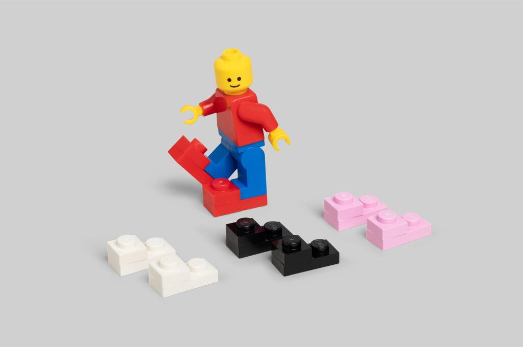 Bár a dizájn egy az egyben a klasszikus legókockát idézi, a tervezők azért vittek bele egy kis csavart, a lábat például egy forgatható sarokpánt tartja a helyén, hogy legalább egy kicsit lehessen járni benne. A talprész csúszásgátló bevonatát egészen egyszerűen oldották meg, annak a formája is a legókocka alját idézi.