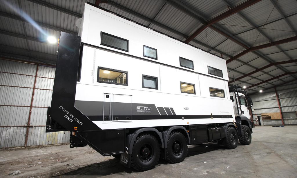 Az ausztrál nagycsalád arra kérte fel a SLRV Expedition Vehicles céget, hogy építsenek meg nekik egy négy keréken guruló luxusapartmant. A kamion mosógéppel, 10 ággyal, berendezett konyhával, étkezővel, fürdőszobával rendelkezik, mindez modern kivitelben.