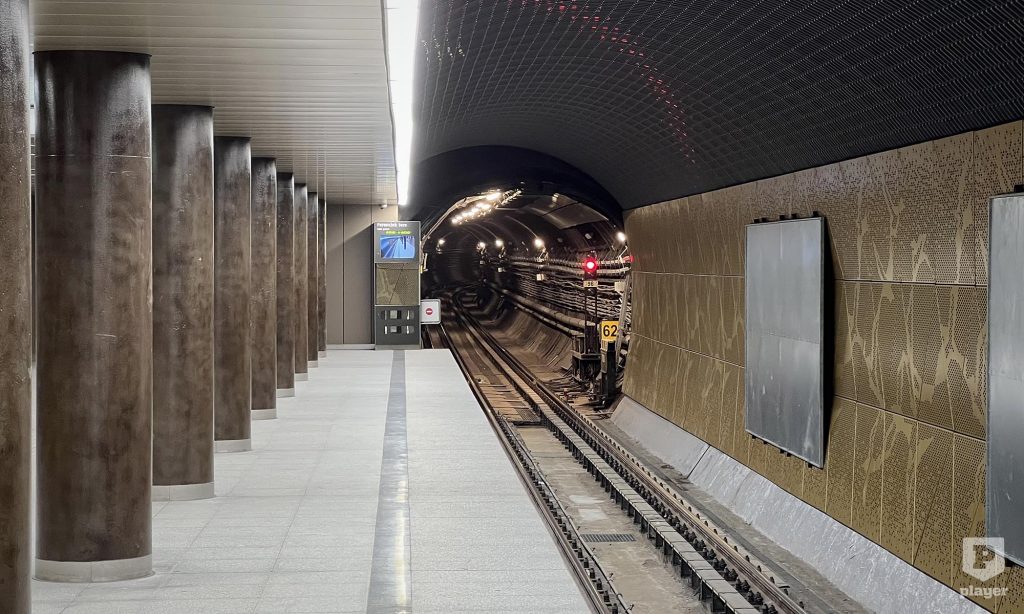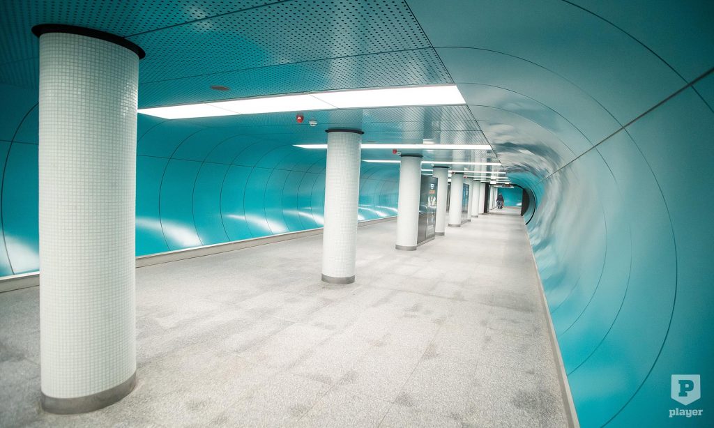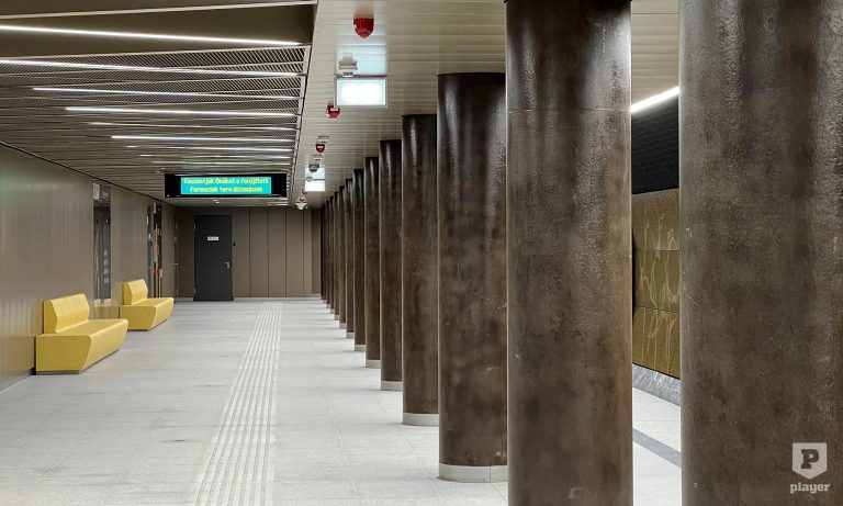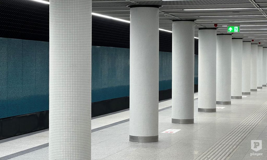 A melegszürke falburkolat, a szabadon lebegő, különös lámpatestek látványa és a tágas tér mindenesetre szokatlan a 3-as metró vonalán.