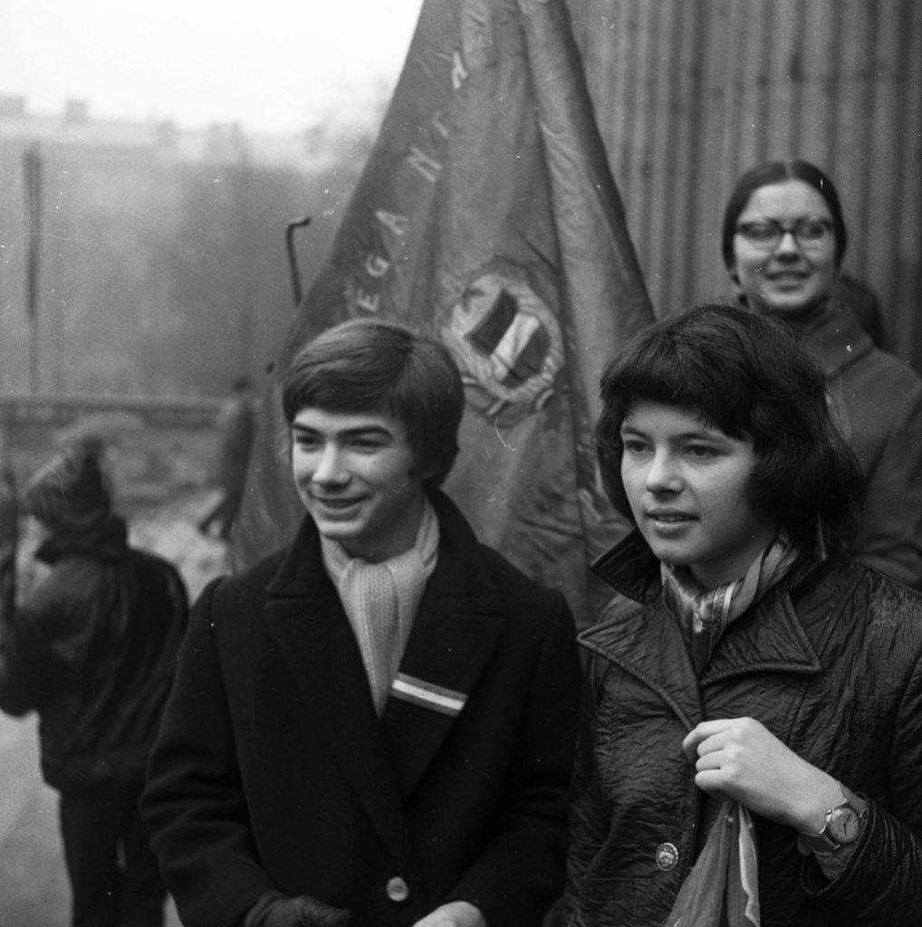 1976, Budapest, fiatalok a Március 15-i ünnepség idején (Fotó: Fortepan/Rubinstein Sándor)