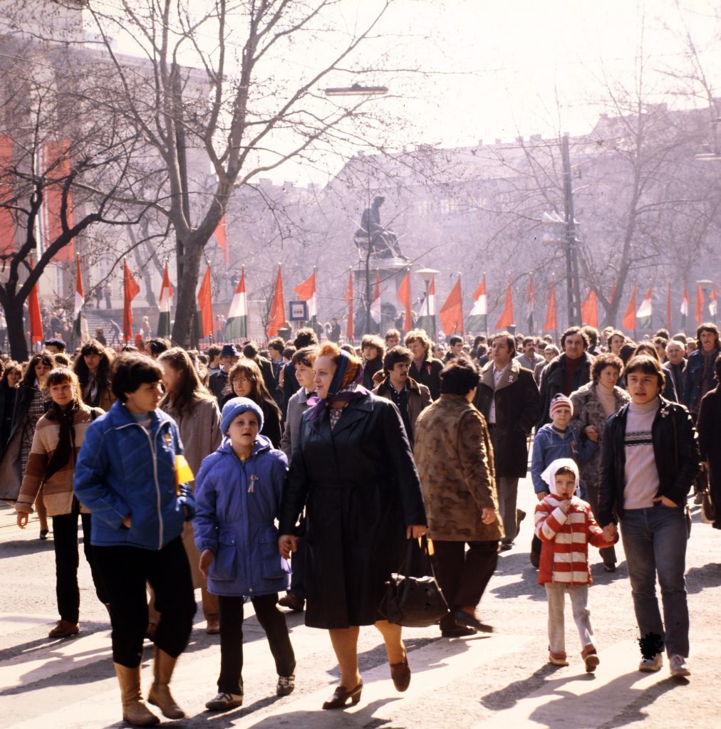 1980, Múzeum körút, a március 15-i ünnepség résztvevői (Fotó: Fortepan/Gábor Viktor)