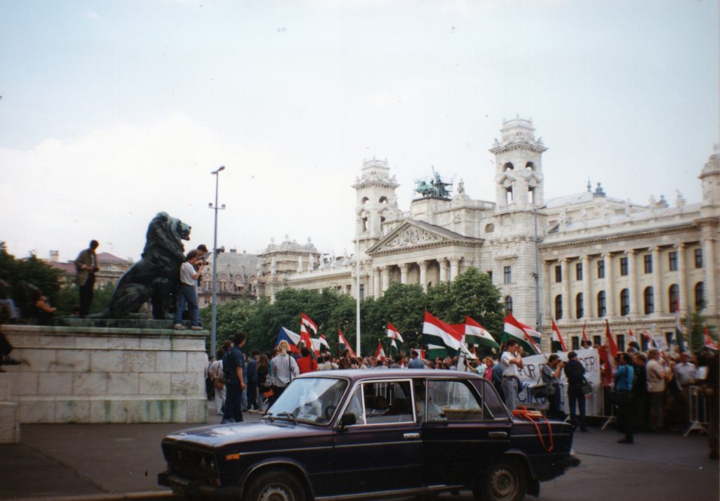 1989, Kossuth Lajos tér, szemben az Igazságügyi Palota, vagyis az akkori Néprajzi Múzeum és az MSZMP Párttörténeti Intézete (Fotó: Fortepan/Marics Zoltán)