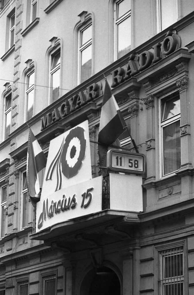 1989, a Magyar Rádió székháza a pesti Bródy Sándor utcában (Fotó: Fortepan/Magyar Rendőr)