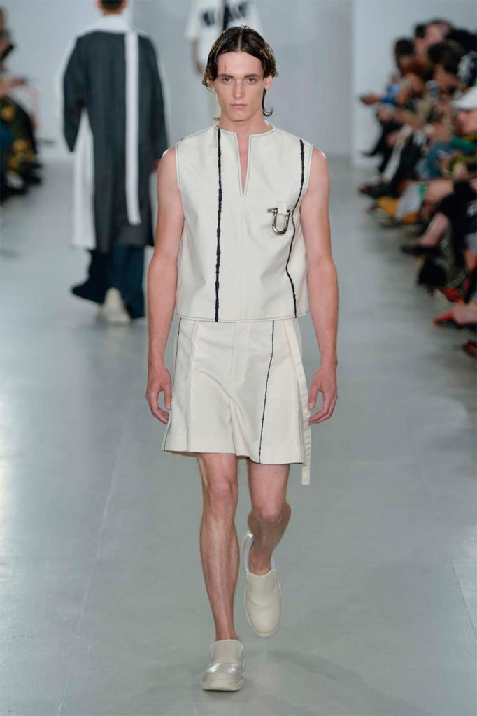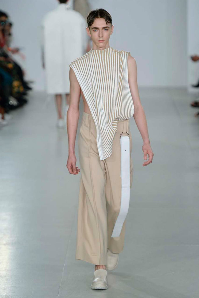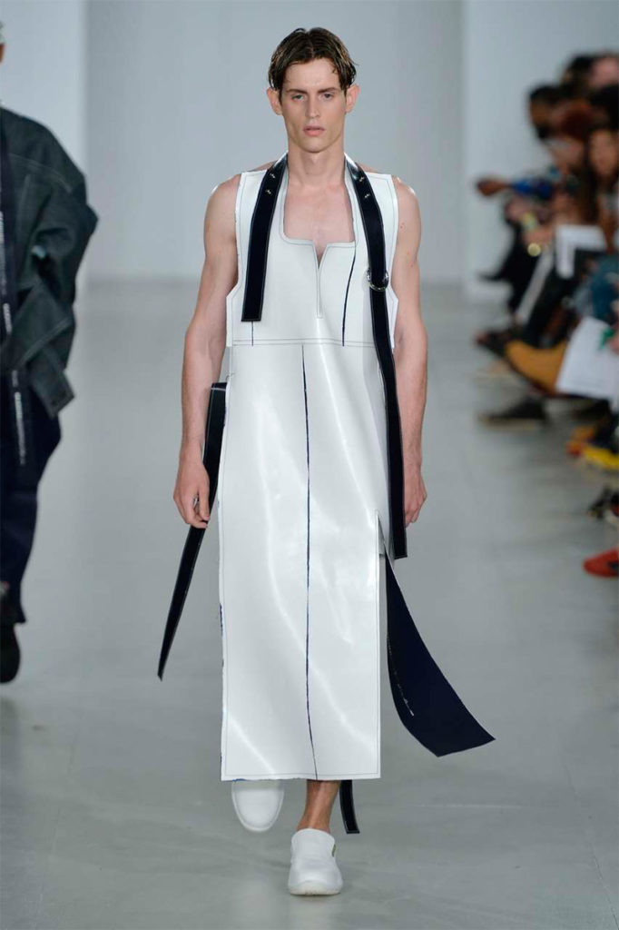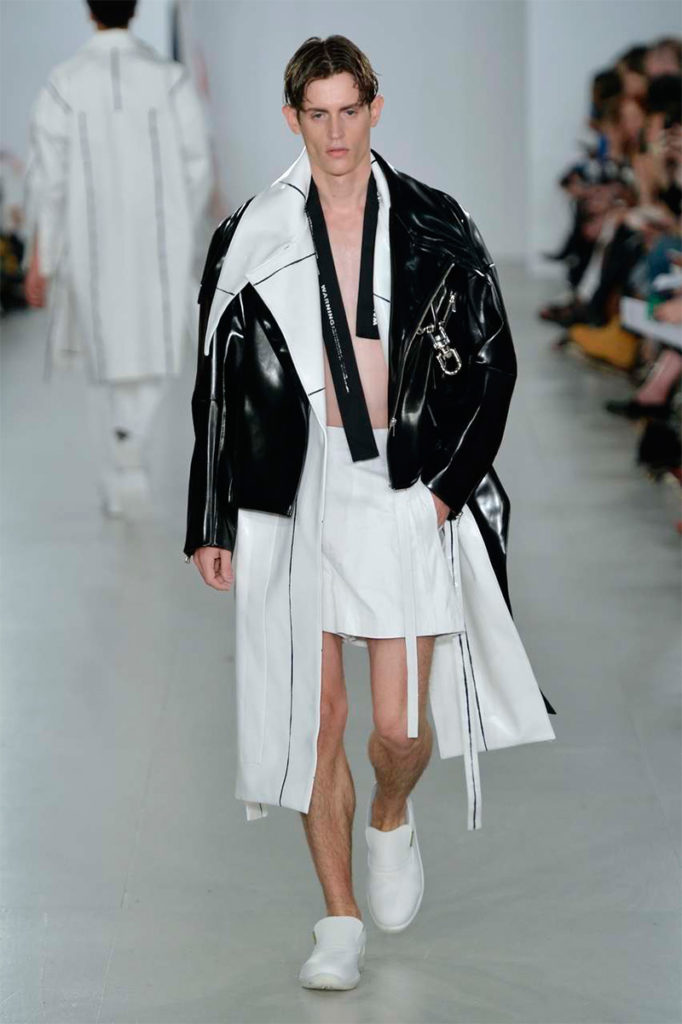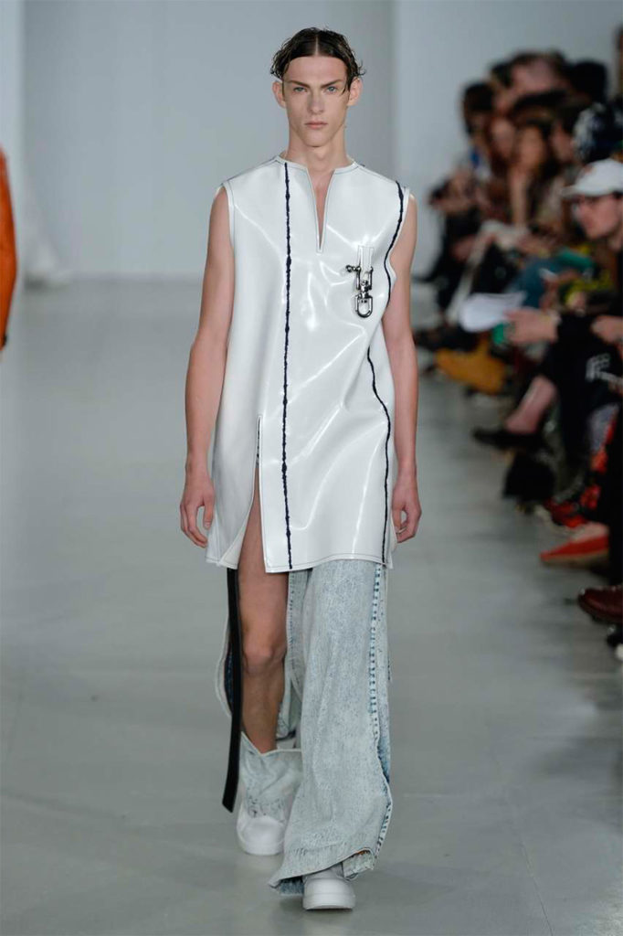 Londonban mutatták be a 2017-re szabott tavasz-nyári kollekciókat, amiben volt pár olyan divattervezői miajóélet, hogy nem tudtunk szó nélkül elmenni mellette. Ximonlee kreációit elnézve megint rájöttünk, hogy nem értjük a divatot. Vagy ők nem értik az ember primer ruhaviselési igényeit. Vagy a fickó szimplán megőrült, mert mi páros lábbal fordulnánk fel a röhögéstől, ha meglátnánk egy srácot ilyen hacukában az utcán. Készülj fel.