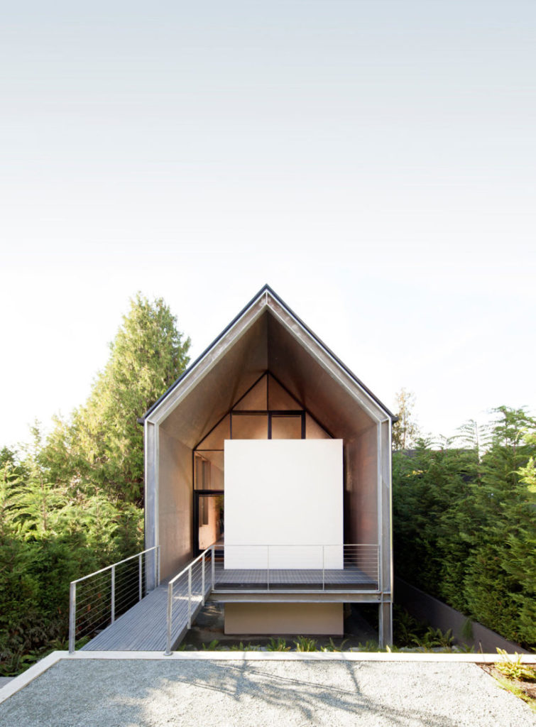 Elég meglepő, de Seattle-ben van ez a nagyon keskeny, felfelé terjeszkedő, ék alakú családi nyaraló. Az építészek nagyon ügyeltek rá, hogy a lehető legkevesebb ökológiai lábnyomot hagyják: egyetlen fát sem vágtak ki a ház körül, hogy megépítsék a lakot és újraültetett haszonerdőből vették hozzá a fát.