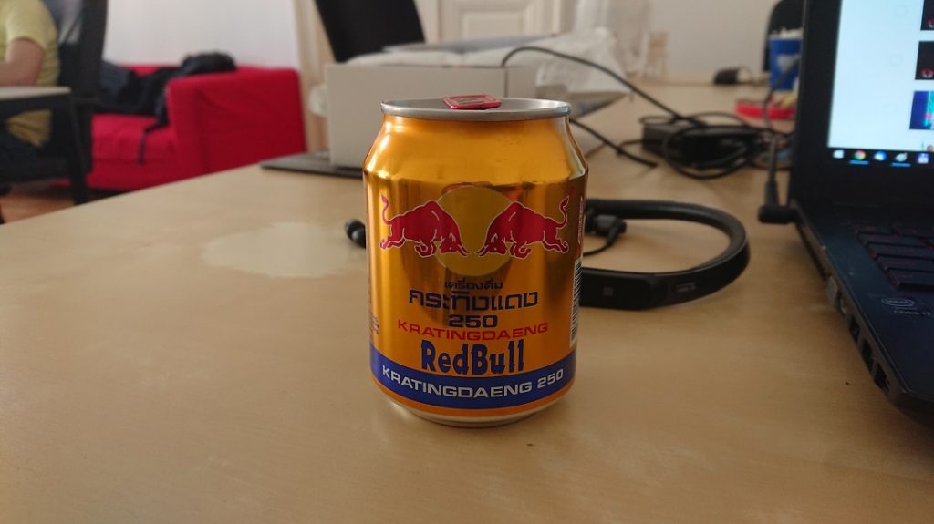 Az ember gyanútlanul sétálgat, erre egyszer csak egy pillanatra megáll a szívverése, amikor olyat lát egy bolt polcán, amit egyébként lehet, hogy nagyon nem kellene: egy doboz thai Krating Daenget, az eredeti Red Bullt, amit 1987-ben aztán a világ minden részében tonnaszám kezdett értékesíteni Red Bull néven Dietrich Mateschitz, és amiből itthon már hivatalosan nem is lehet taurinos verziót kapni. Marad a koffein, és a tutti-frutti íz, és sokszor a vodka. Mármint bele. Vagy mellé. Ahogy tetszik.