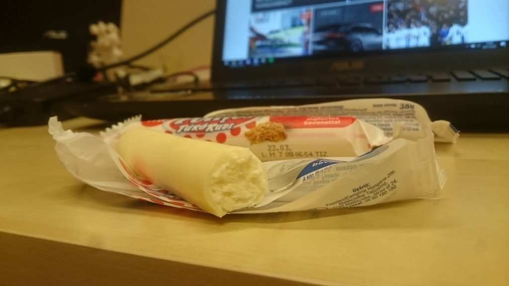 Magyarul az egész szerkesztőség áldását adta rá, tulajdonképpen mindenki rápörgött a Fitt Túró Rudira, továbbra is hívők maradtunk, sőt, örülünk az új jövevénynek, keblünkre öleljük, szívünkbe zárjuk, de azért továbbra is fájlaljuk, hogy nem a mogyoróvajas óriás Rudit állandósította a Pöttyös, ami egy bitang rossz ötlet volt, de hát elillant, porrá lett, nincs többé. A disznók elé vetették. Örökké gyászolni fogjuk. Vagy legalábbis addig, amíg vissza nem tér valamikor.