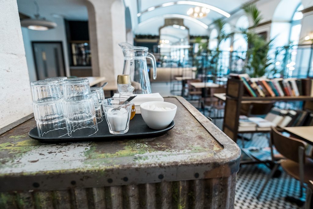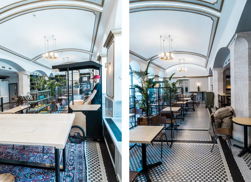 A hely tulajdonosai alaposan támaszkodnak az ingatlan múltjára, nagyon szépen csúszik itt egymásba a jelen, illetve a múlt több síkja. A boltíves mennyezet még a 19. századot idézi, a berendezés több részlete viszont a huszadik század különböző évtizedeit képviseli: van itt NDK-s lámpabúra, nyolcvanas éveket idéző iskolai székek, satuasztal a háború előttről, megkapó energiával keveredik a polgári és az indusztriális, a vintázs és a modern.