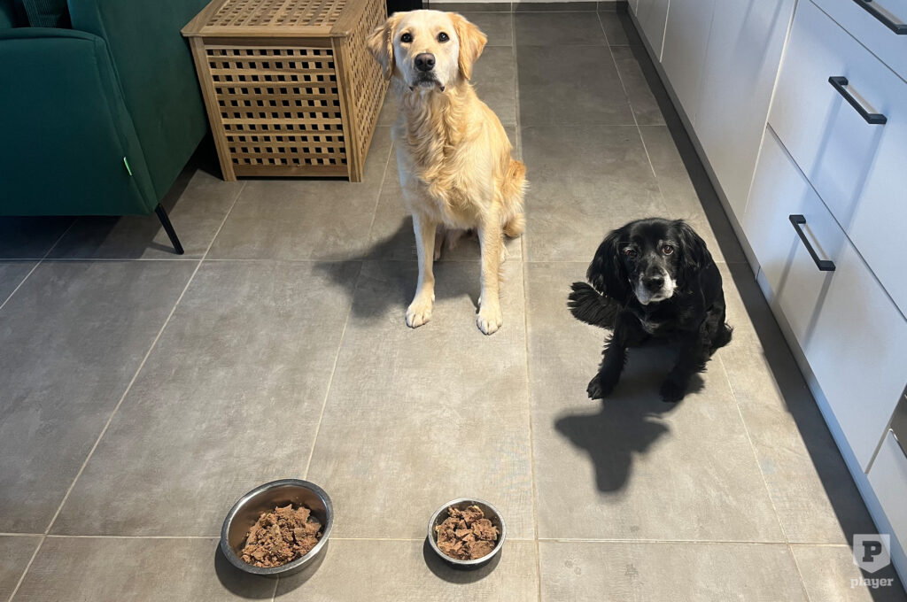 - ...a tápot is mindig ugyanakkor odaadni neki – el kell döntened, hogy a számára szükséges mennyiségű eledelt egy adagban adod oda neki, vagy több részletben a nap folyamán, illetve, hogy séta előtt vagy után. Nálunk ez úgy néz ki, hogy kettéosztottuk a kutyáink eleségét, az egyik felét a reggeli, a másik felét pedig az esti főséta után kapják meg. Azért döntöttünk így, hogy jó élménnyel kapcsolják össze a (nagyobb/hosszabb) sétákat.