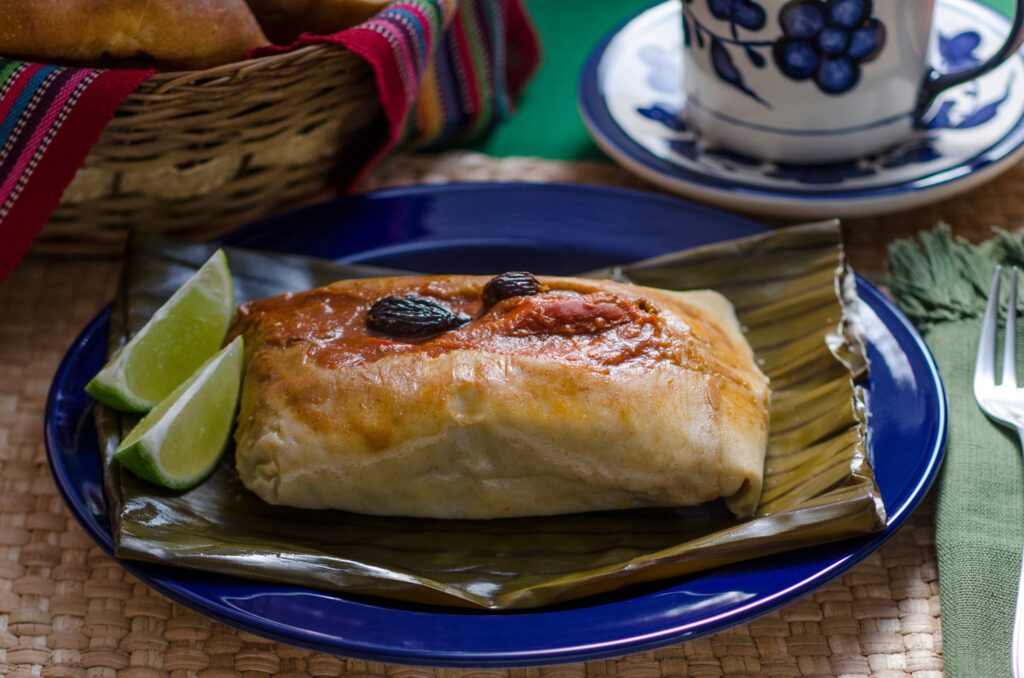 Guatemalában a karácsony sztárja a tamale. Ez egy gazdag, sós fogás kukoricalisztből (masa) és zsírból, ízes, fűszeres recadóval, hússal – leggyakrabban sertéssel vagy csirkével – töltve. Kerül bele krumpli, olívabogyó, paprika, néha gyümölcs is, az egészet friss banánlevélbe csomagolják és gőzölik. Puha, illatos, laktató – és teljesen más világ, mint a mi halászlé-univerzumunk.
