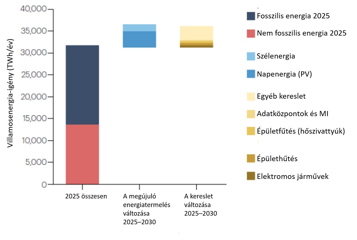 A tanulmány azonban hangsúlyozza: ez még nem jelent tartós trendfordulót. Az változás iránya könnyen megfordulhat, ha új keresleti hullámok jelennek meg. Ilyen lehet az adatközpontok és a mesterséges intelligencia gyors terjedése. Az adatközpontok jelenleg körülbelül 415 terawattórányi villamos energiát fogyasztanak évente, ami a globális áramfelhasználás mintegy 1,5 százaléka. A Nemzetközi Energiaügynökség előrejelzése szerint ez az érték 2030-ra elérheti a 945 terawattórát, vagyis önmagában képes lehet elnyelni a megújulók bővülésének jelentős részét.