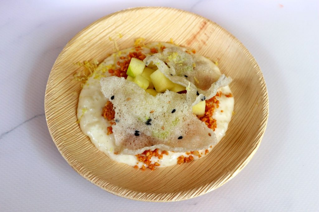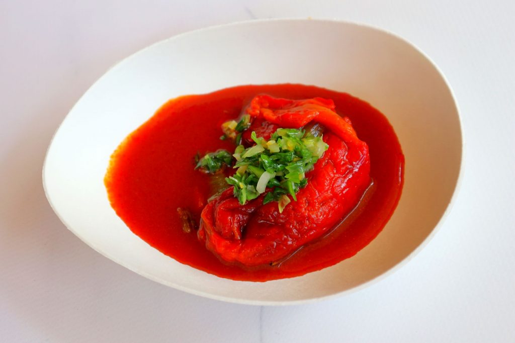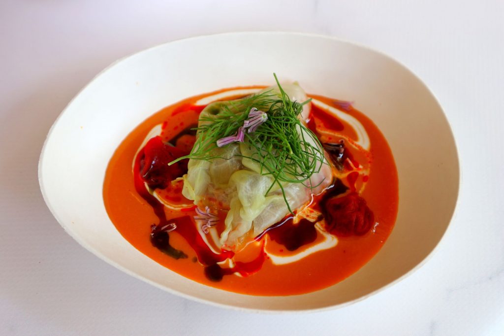 A „Langyos nyári töltött káposzta” egy családi recept átdolgozásából született, mangalicalapockából, friss kaporral, új káposztával. A „Lecsó csabai kolbásszal” szikkasztott-töppesztett paradicsomfalatkái zseniálisak, a kápia paprikának markáns textúrája van, a külön pirított csabai kolbászban benne marad az íze, a nyomokban (ha jól emlékszem) málnát is tartalmazó mártás pedig messze túldobja az egészet a paradicsom-paprika-univerzumon. A „Tejberizs, kesudió, granny smith, wasabi” pedig remek nyári desszert, amelyben a hűvösen savanykás almás-tejes-rizses kásához pont csak annyi extremitást tesz hozzá a wasabival finoman kent nem-is-tudom-mi-chips, hogy sokáig emlékezzünk majd rá: a Nesquik-szóráson túl is lehet élet egy tejberizs számára.