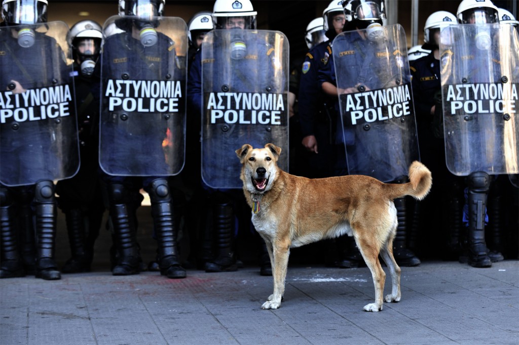 Már 2010-től utcai tiltakozásokon fejezték ki a görögök, mit gondolnak a megszorításokról. Kanellos például leugatta a rohamrendőröket, és kis képzavarral élve a tüntetők arca lett: két éven át gyakorlatilag az összes zavargásban részt vett, annyi sajtófotó készült róla, hogy azt egy közepesen sok megtekintést végrehajtó államtitkár is megirigyelné.