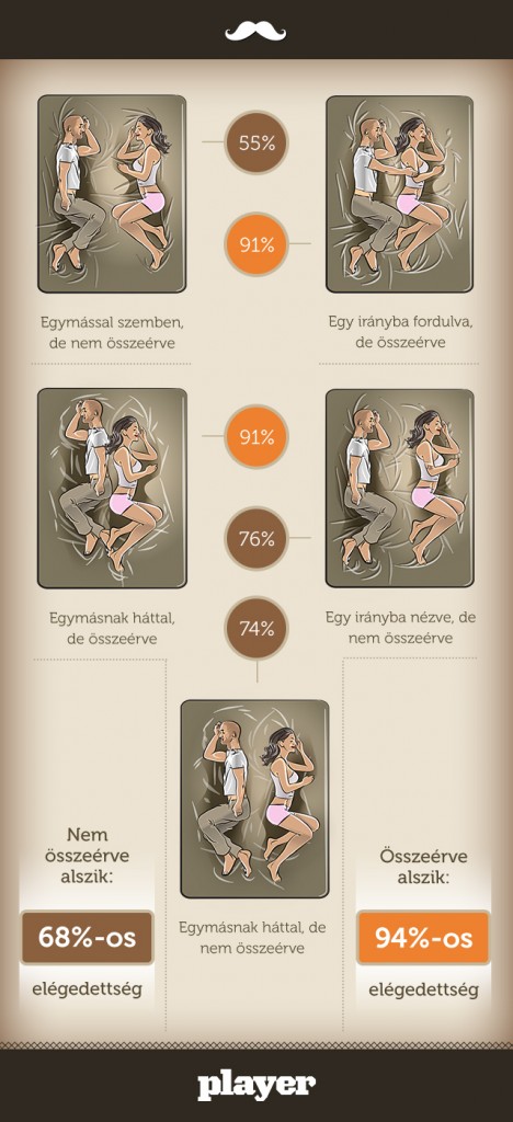 Akik nem összebújva alszanak, de legalább egy irányba fordulva húzzák a lóbőrt, azok is nagyobb százalékban vallják boldognak magukat, mint azok, akik egymásnak háttal szunyálnak. Összességében elmondhatjuk, hogy akik egymáshoz érnek, vagy egy irányba fordulva töltik az éjszakát, boldogabbnak érzik párkapcsolatukat, mint a más pózban alvók.