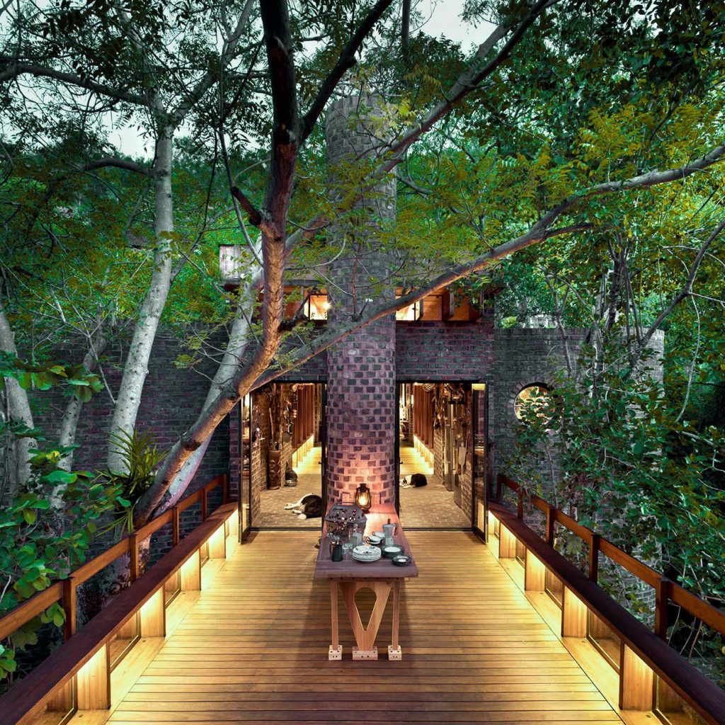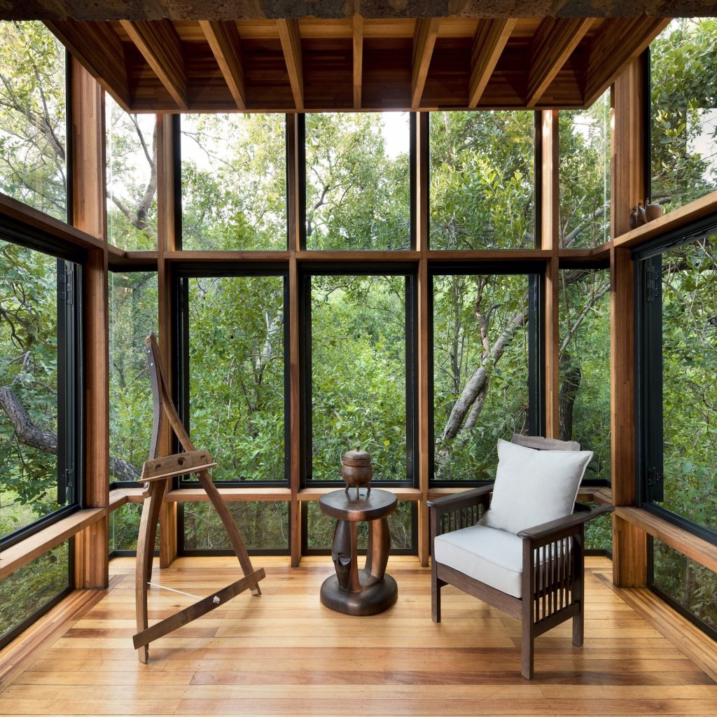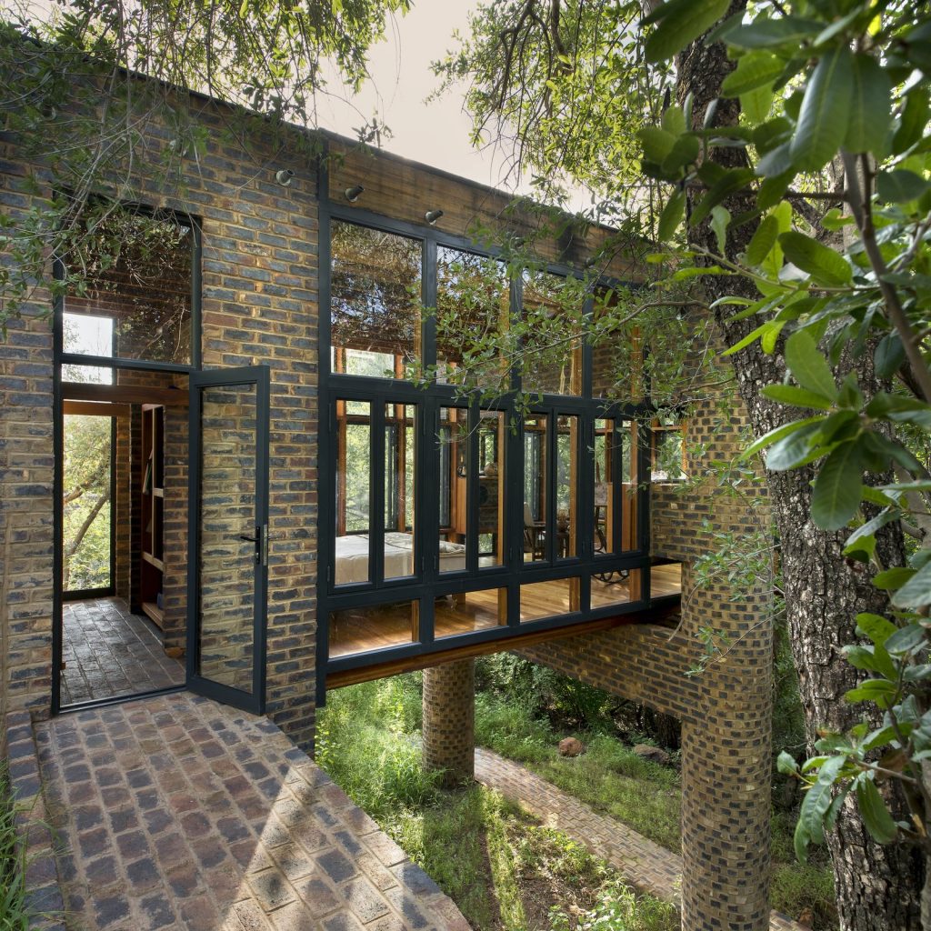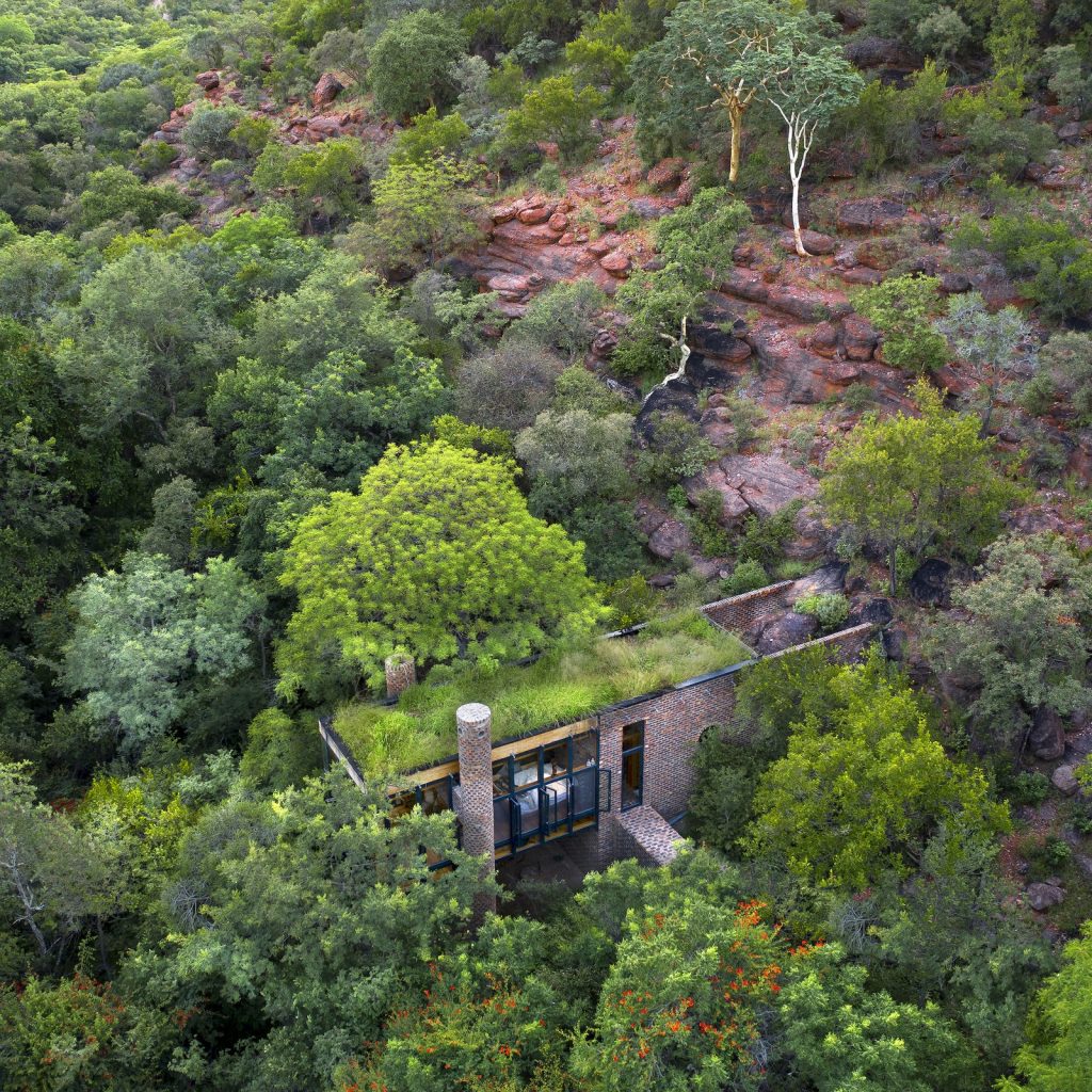 Frankie Pappas munkáját dicséri az a zöldtetős, tégla vendégházt, amely gyakorlatilag szimbiózisban él a természettel Dél-Afrika sűrű erdejében, Waterbergben.