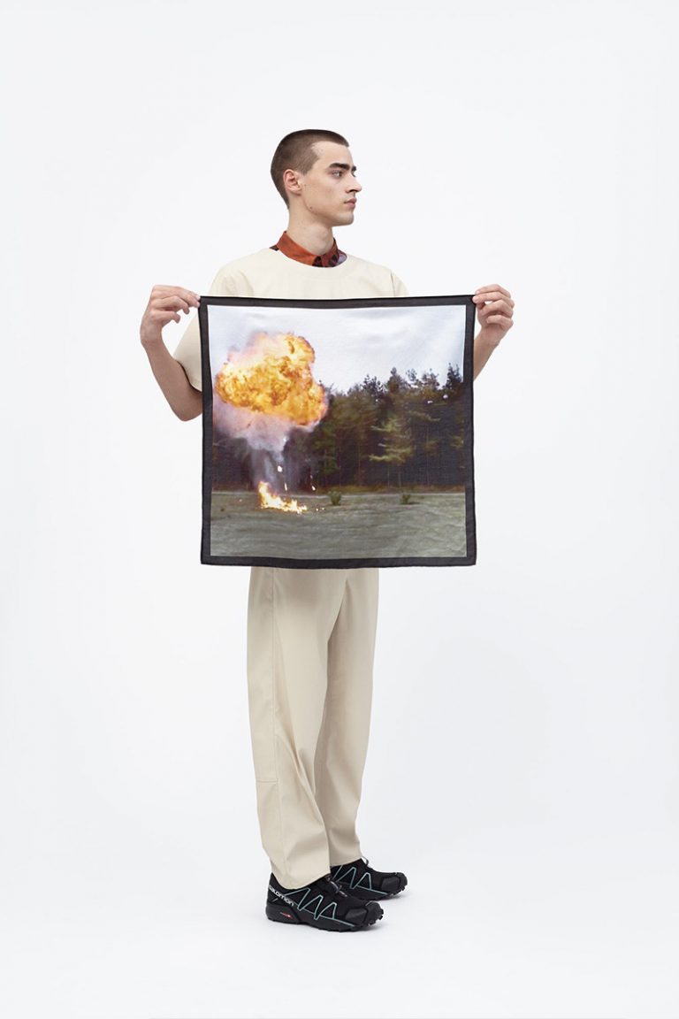 A kollekcióból abszolút kedvenc a print ing, amelyen a háromperces jelenetből több screenshotot is láthatunk – természetesen elég menő robbanásokkal.