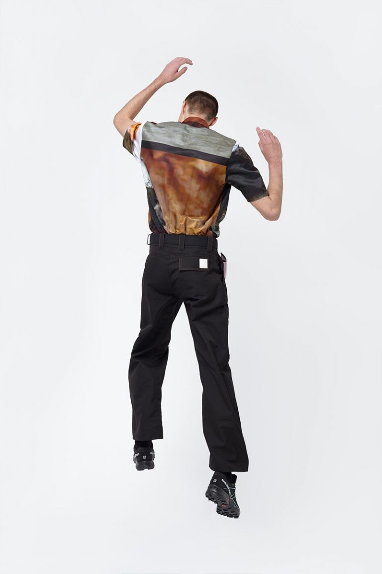 A Schepperheyn-lookbook másik különlegessége, hogy a modellek a képek egy részén a Hülye Járások Minisztériumába illő mozdulatokat produkálnak – bár ez nem feltétlenül tűnt volna fel a „magas divat” értelmetlen pózaihoz szokott szemünknek, ha a tervező maga nem hívja fel a figyelmet az apró részletre.