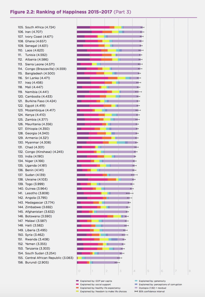 A legboldogtalanabb hely egyébként a kelet-afrikai Burundi lett.