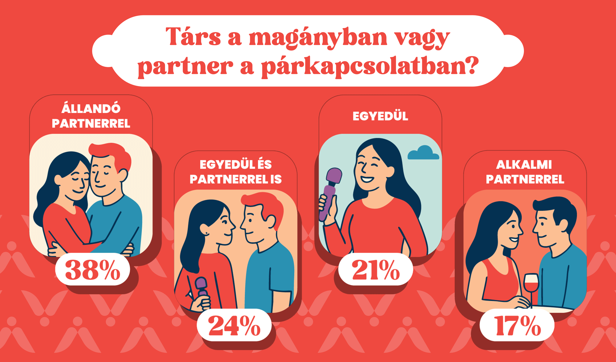 A több mint kétezer megkérdezett válaszainak köszönhetően sikerült belesni a magyarok féltve őrzött hálószobatitkaiba, amiből kiderült, hogy a magyar nők vadócok, a férfiak érzelmesebbek, és minden 5. megkérdezett szingli.
