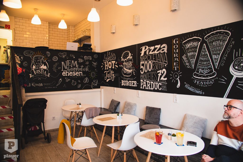 Kárász Rékával egyeztettünk, aztán férje, Kárász Ervin fogadott minket a Bartók Béla úti kis pizzázóban, amit egy merész húzással a Covid-járvány alatt nyitottak meg. Mondván, ha már nem tudnak a népek beülni sehova egy jó kajára, akkor hátha többet rendelnek, és a minőségre való igényben is lépünk egy szintet.