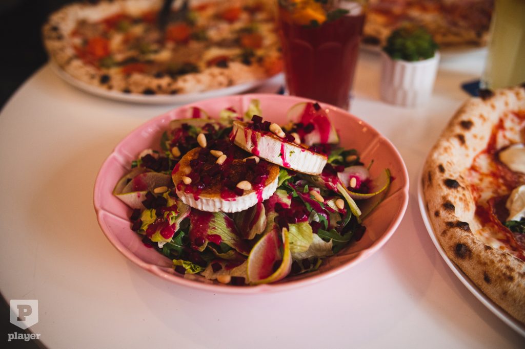 A pizzához kísérőnek beburkoltunk egy kecskesajtos salátát is, annyira szép és színes volt, hogy nem lehetett kihagyni.