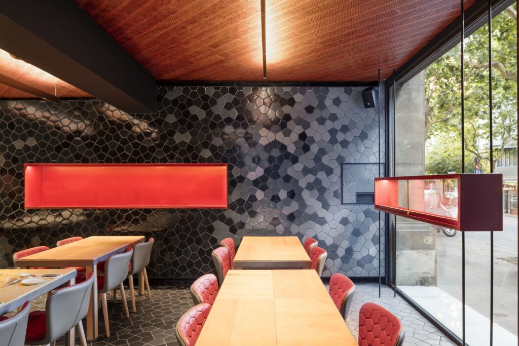 Nagyot húztak egy katalán tengerparti étterem, a Tunateca Balfegó építészei; az éttermet üzemeltető családról elnevezett tonhalspecifikus helyen a minimalizmusba kedvesen csempésztek bele itt-ott a halrajokra, pikkelyekre, tonhalra emlékeztető kis dizájnelemeket.