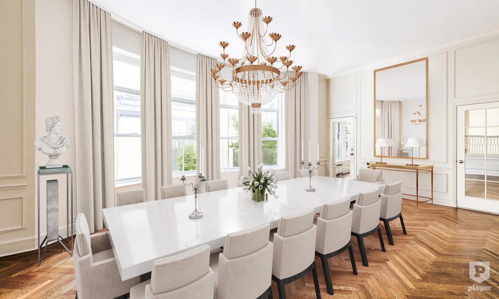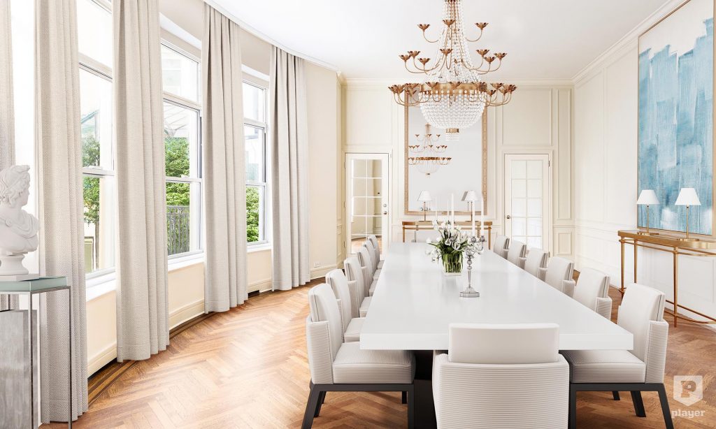 A hirdetést kezelő Sotheby’s International Realty virtuális képein láthatod, milyen pompásan lehetne berendezni ezt a házat.