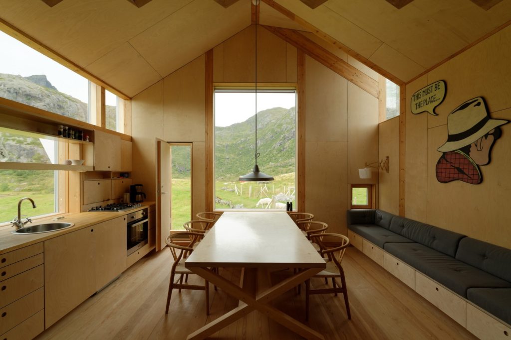 Aszimmetrikus terekkel, geometrikus formákkal, túlnyomórészt fa felhasználásával készült el ez a házikó, mely ötvözi a tradicionális északi házépítést a modern elemekkel. Így született meg ez a kis nyaraló Lofotenben, melynél még arra is ügyeltek, hogy az extrém időjárásnak (elképesztő szelek) is ellenálljon a faház.