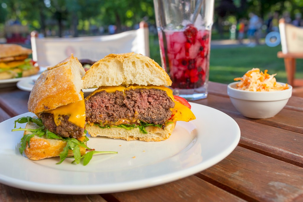 A nyitás óta minden szezon kezdetén van egy kis tavaszi frissítés, így került be a kínálatba tavaly például a hamburger (1650 Ft), melynek említésére rögtön felcsillanó szemmel kezdtük el méregetni a grillpultot, hogy vajon most hol bujkálhat a kis drága. Nos, sokat nem is kellett rá várni, és mihelyst megérkezett, éreztem, hogy jó lóra tettünk ezzel a választással. A ciabatta ami jelen esetben buciként funkcionál helyben sült, és komolyan mondom, ritkán találkozni ennyire friss és ropogós péksüteménnyel. Benne a hús kellemes darab, Gál Józsi-féle húspogácsa, ráolvasztott sajttal, paradicsommal, és rukkolával tálalják.