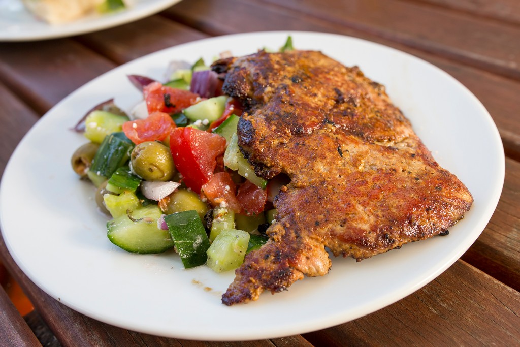 Azt mondják, evés közben jön meg az étvágy, és ennek mi is igazat tudtunk adni. Valószínűleg ezért történhetett, hogy kettőt sem pislogtunk, és máris magunk előtt találtunk egy jófajta pácolt-grillezett tarját (850 Ft), a nyári grillpartik örökös sztárját, ráadásul egy görög salátaágyon (650 Ft) - egy forró nyári napra mi kellhet még? A kérdés csak költői, hiszen mi sem egyedül jöttünk, így ezzel párban érkezett egy grillezett csirkemelles bagett szendvics is (1300 Ft), szintén megkoronázva a ráolvadó sajttal, valamint kevert salátával, rusztikus bagettben.