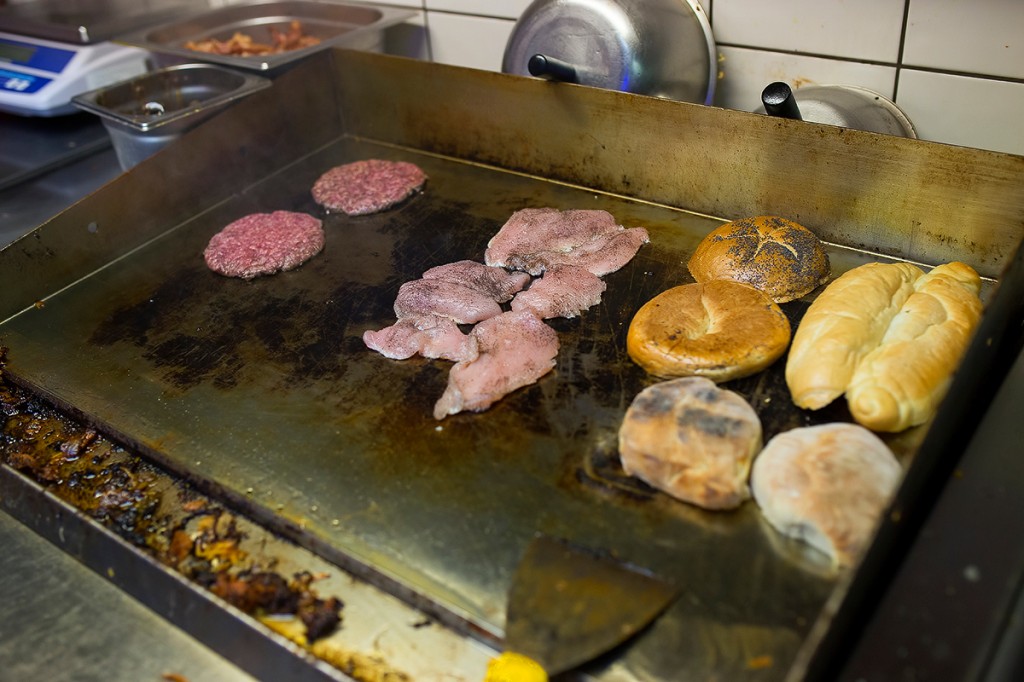 Az egyes szendicsekhez saját pékáru érkezik, a védjegyük a mákos, császárra emlékeztető zsemle, de van itt klasszik burger-buci, Marmorstein ciabatta, valamint nemsokára gluténmentes zsömle is kérhető majd. A húspogácsa marhanyakból készül, 12 dekás, fűszerezése pedig só, bors, worchester, ketchup, dijoni, és egy kevés titkos összetevőből áll. Néhány ilyen fel is került a rostlapra, hogy ott nyerje majd el végső formáját a szendvicsekhez.