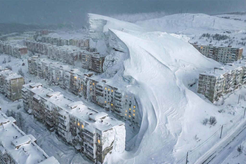 amikor a kamcsatkai havazásról szóló híréhez olyan felvételeket használt fel, amik már első pillantásra sem igaziak. A hófalak ezen szinte teljesen elnyelik az épületeket, föléjük is tornyosulnak, a gyerekek a tizedik emelet magasságából szánkóznak le, és minden képen olyan finomak, lágyak a textúrák, amik csak az AI által generált videókra jellemzők.